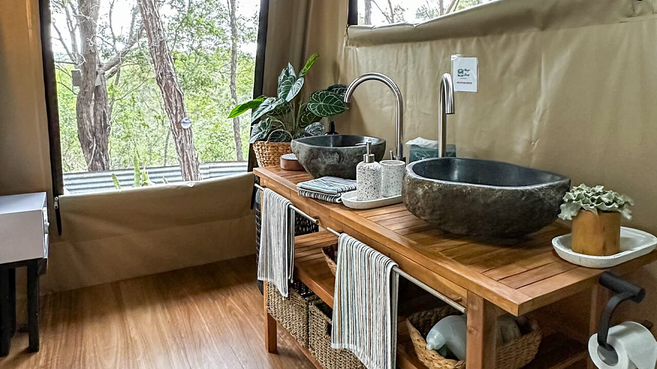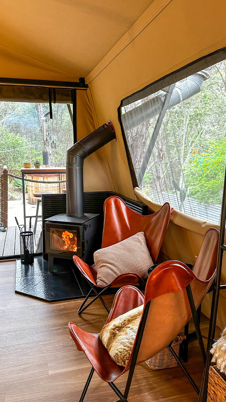 As the tent operates on rainwater tanks (non-potable) we provide fresh drinking water for our guests. Moogie Glamp uses a wastewater treatment plant.