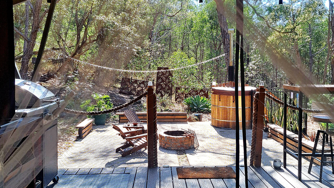 Priced at $95 per couple per stay. This includes the tub being filled with fresh water for each new booking, sufficient wood for the stove to heat the water, plush bathrobes and spa towels for your use during your stay and a Bush Salt Therapy – exclusively made for Moogie Glamp guests.